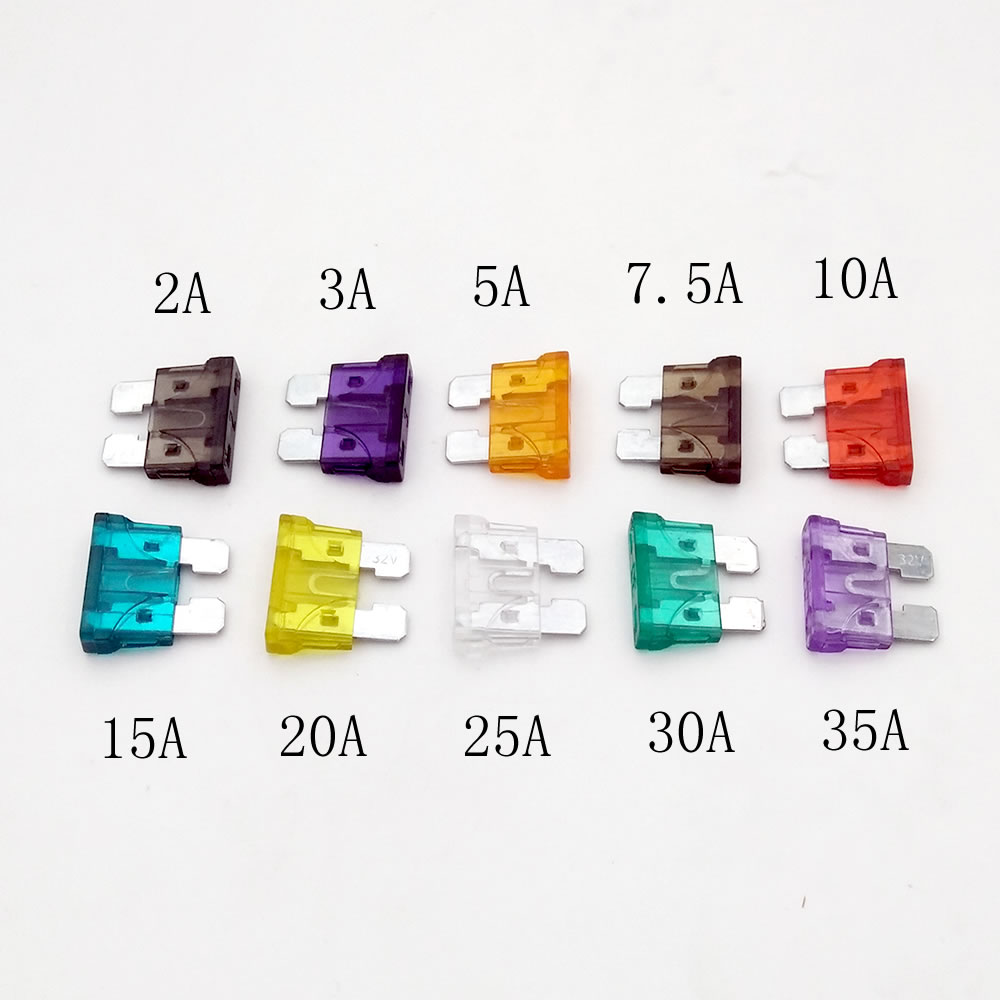 В пакет входит: 2A 10 шт., 3A 10 шт., 5A 10 шт., 7.5A 10 шт.,10A 10 шт.,