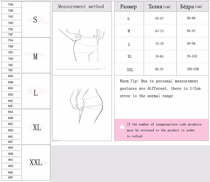 Размер чашечки | Верхняя часть груди (см) | Под грудью (см) | Ширина талии (см) |