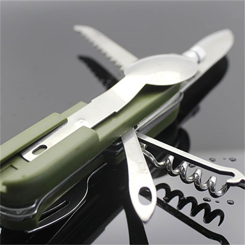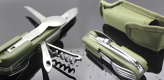 Складной походный нож. С ложкой, ножом, вилкой, фонариком, штопором и чехлом!