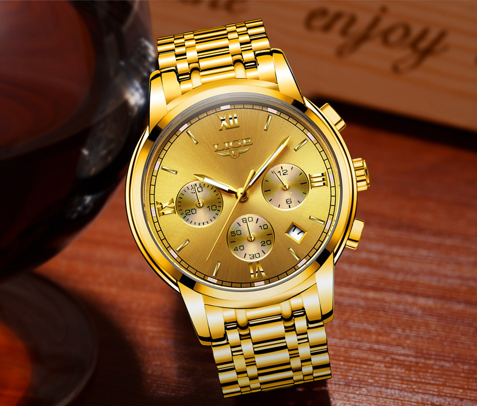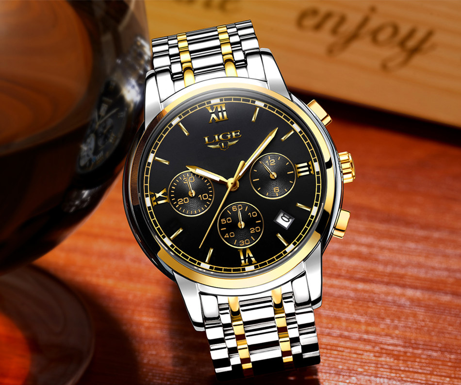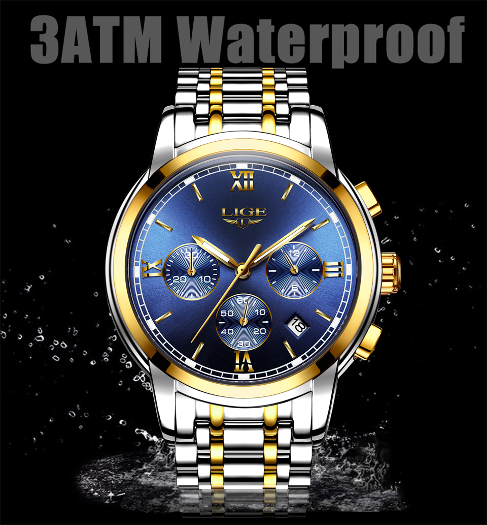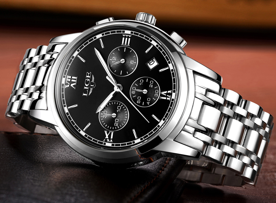 Особенности: водонепроницаемость, автоматическая дата, хронограф, ударопрочность