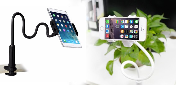 Гибкий держатель с прищепкой для телефонов и мини планшетов – это, в первую очередь, самое удобное приспособление. Благодаря прищепке, держатель крепится ко всему: к монитору, к полке, к ветке (если использовать как штатив). Пружинистый стержень изгибается под любым градусом.