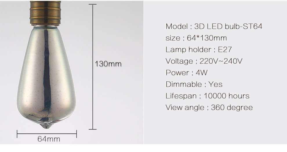 Размеры: ST64 3D лампы: 60*130 мм