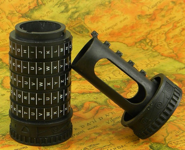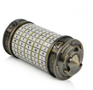 Для тех, кто не читал «Код да Винчи» Дэна Брауна (Dan Brown), придётся объяснить, что это за штука. Как можно догадаться по внешнему виду, этот хитрый цилиндр не что иное, как сейф. В полость помещается какая-нибудь вещь (чаще бумажный свиток), после чего крышка закрывается и диски с буквами вращаются в произвольное положение. Чтобы открыть криптекс, нужно «набрать» правильную комбинацию.