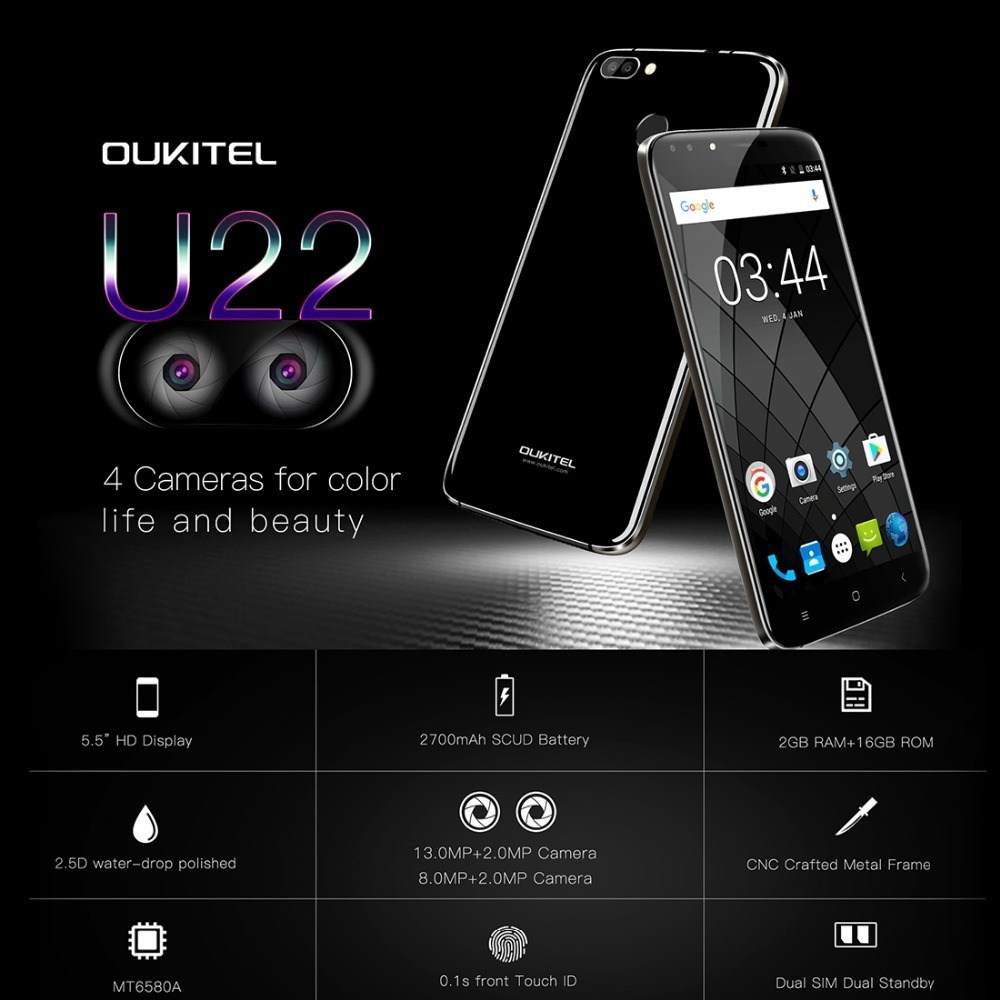 Мощный смартфон Oukitel U22 (оригинал) 'Android 7.0 2700 мАч FHD MTK6580 4 ядра 13MP. Станет надёжным помощником!