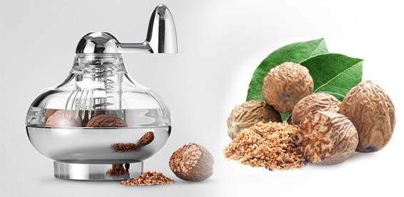 Удобная в использовании. Высококачественная хромированная пластмасса. Лезвие из закаленной нержавеющей стали. Прозрачная крышка. Вместительное отделение для мускатных орехов.