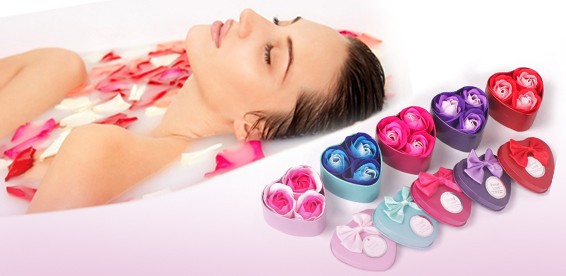 Туалетное мыло изготовлено в виде бутонов роз. Мини-набор состоит из 3-х бутонов. Коробочка декорирована ленточкой.