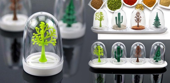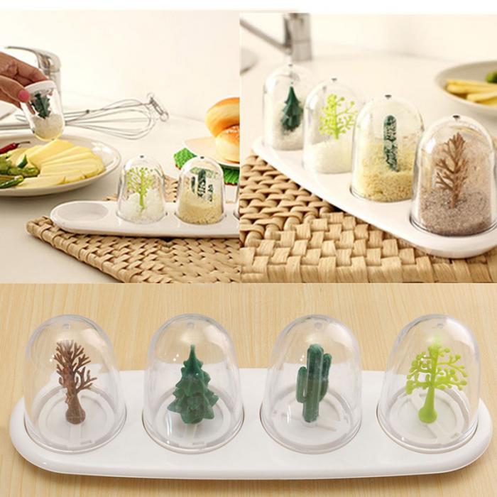 Баночки для специй с подставкой и искусственными растениями. Оригинальная сервировка стола!