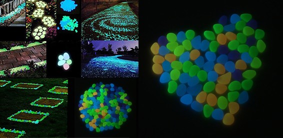 На даче или же частном доме, светящимися камнями можно выложить края дорожки, что будет служить не только украшением, но и за счет отдаваемого света, отпадет необходимость в освещении. Светящиеся камни отдают энергию света, которой зарядились за день и продолжительность их свечения тем больше, чем больше времени они пребывали на свету.