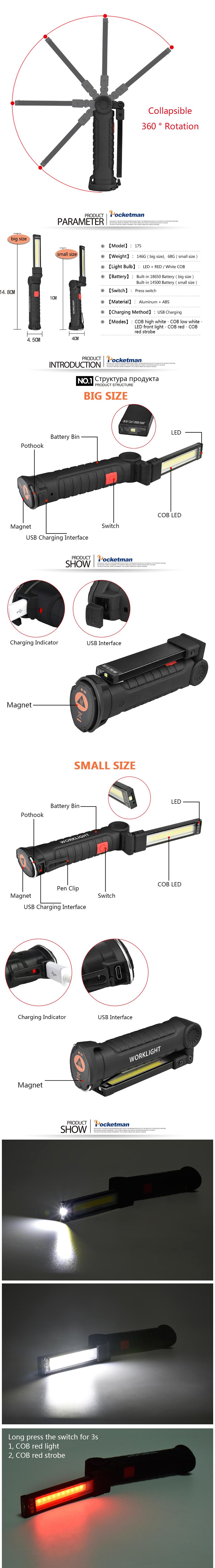 5 режимов: высокий, низкий COB LED, светодиодный, красный свет (долгое нажатие), Flash красный свет