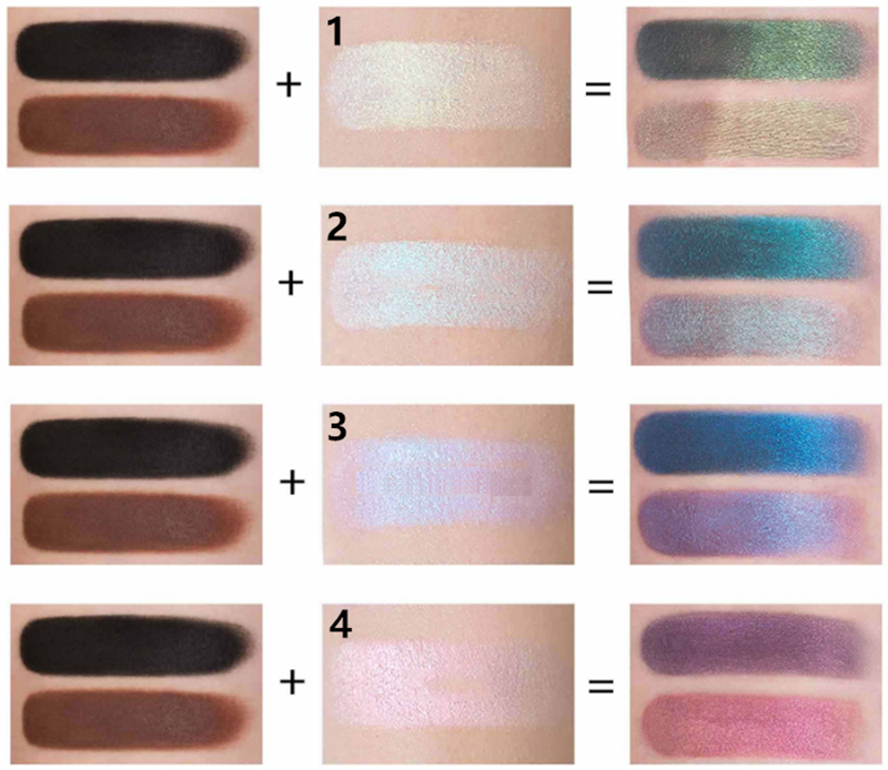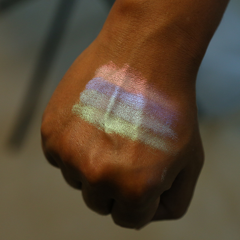 Отлично набираются на кисть, не пылят, прекрасно отдают цвет на кожу можно наносить пальцами. Очень мелкодисперсные, создают достаточно однородное покрытие, без видимых частичек. Используйте тёмные подложки для более насыщенного цвета. Можно наносить на глаза, лицо, губы для создания металлических, жемчужных бликов!