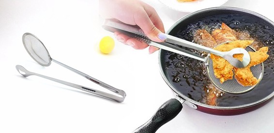 Шумовка-щипцы идеально подходит жарки и фритюра. Жир и масло стекают обратно в посуду, а конструктивная особенность шумовки с функцией щипцов поможет придержать вынимаемые продукты. С помощью этой шумовки Вы сможете извлечь из кипящего масла картофель, пончики, беляши, чебуреки, хворост и т.п. Изготовлено из коррозионностойкой (нержавеющей) стали. После применения рекомендуется промыть губкой с использованием жидких моющих средств. Хранить в сухом помещении. Длина 28 см, диаметр 10 см.