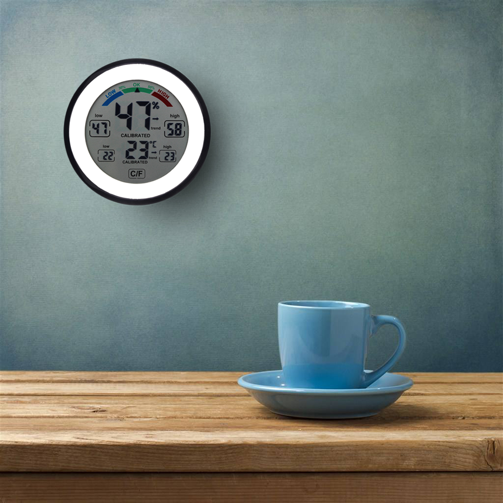 Этот цифровой измеритель, который может отображать температуру и влажность одновременно, с максимальным и минимальным значением отображения. Подходит для настольного размещения или на стене.