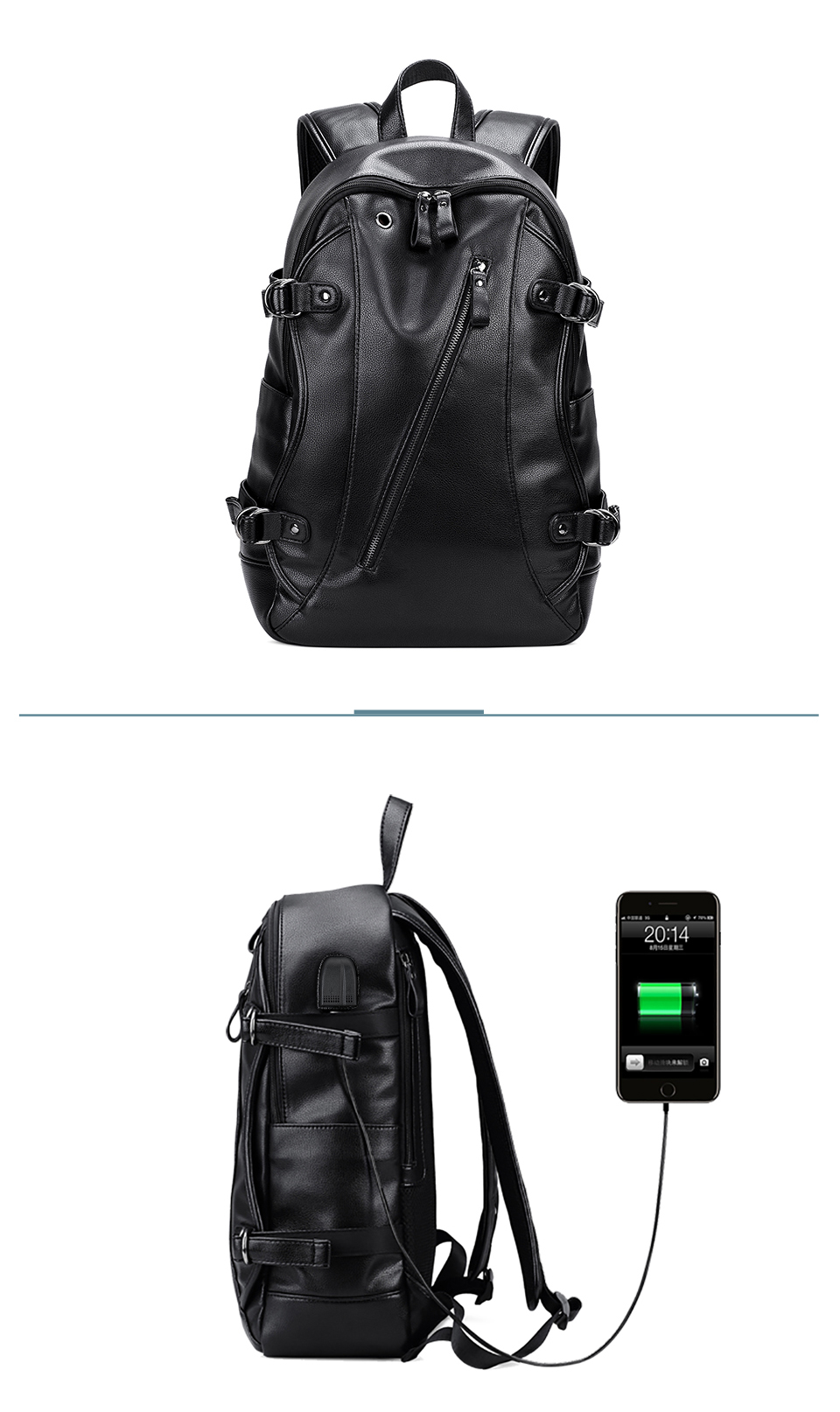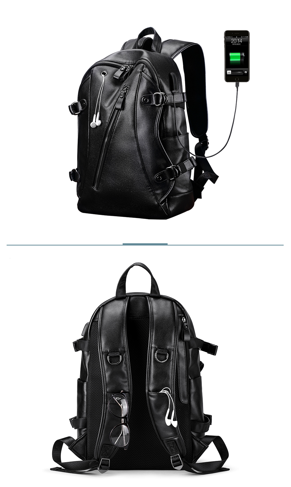 Вместительный рюкзак из экокожи со встроенным usb разъемом.
