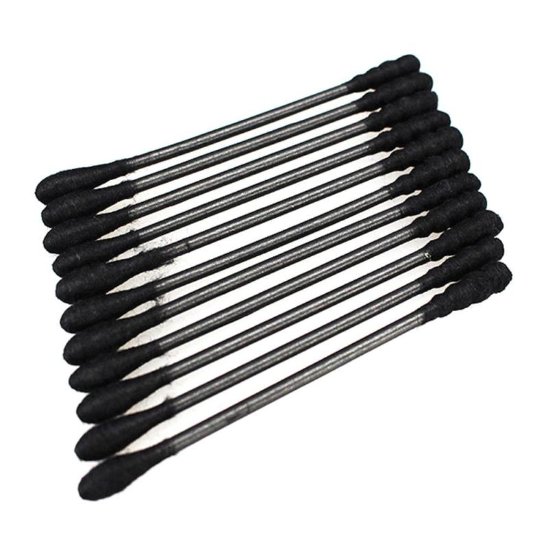 Чёрные ватные палочки усилены активированным углем, для лучшей абсорбции. Уголь легко втягивает в себя жидкие и кремовые субстанции. На чёрном цвете вы можете лучше видеть светлые косметические средства, особенно удобно снимать излишки перламутровых и светлых теней. Прокатыванием палочки по поверхности губ, можно легко снять излишки губной помады, в отличие от прикладывания салфетки, ватная палочка не вберет в себя слишком много, и можно снять излишки только по контуру губ.