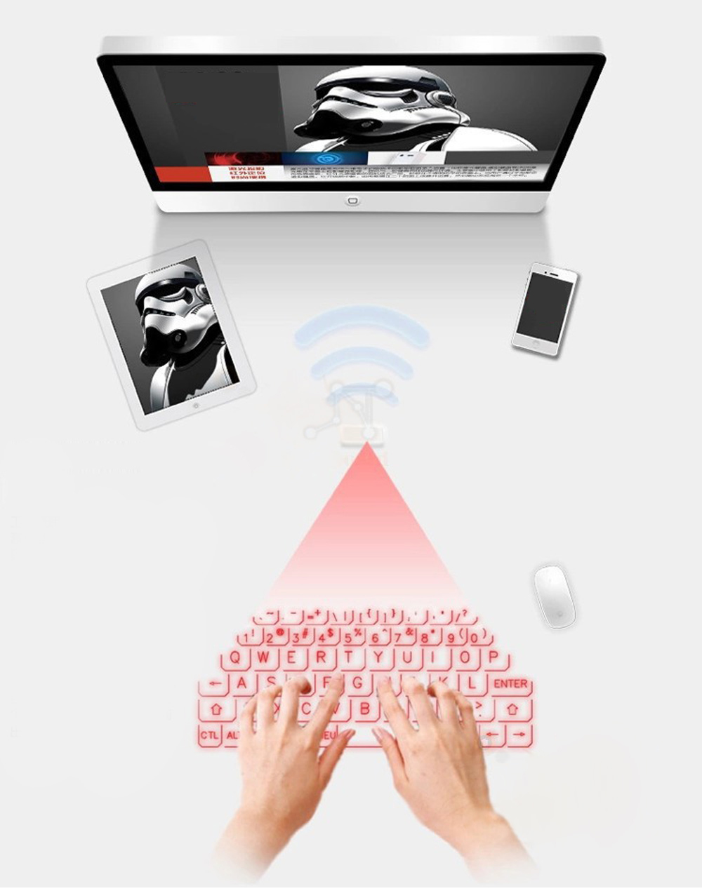 Мы живем во времена, когда самые футуристические технологии из фантастических фильмов начинают воплощаться в жизнь. Все мы не раз видели на экранах телевизоров голографические изображения и элементы управления. И они перестали быть фантастикой. Лазерная клавиатура AGS может удивить даже заядлого любителя новинок в мире гаджетов. Устройство имеет небольшие размеры и массу всего 60 г. Оно проецирует полностью виртуальную клавиатуру на любую поверхность и совместимо с любым гаджетом – будь то смартфон, ноутбук или планшет. Поддерживаются ОС Windows, Android и конечно же iOS. Подключение происходит посредством Bluetooth 3.0. Помимо стандартной клавиатуры AGS Wireless Laser Projection Bluetooth Virtual Keyboard способна выполнять и роль мыши. Почувствуйте себя в мире будущего уже сегодня с этим необычным устройством.