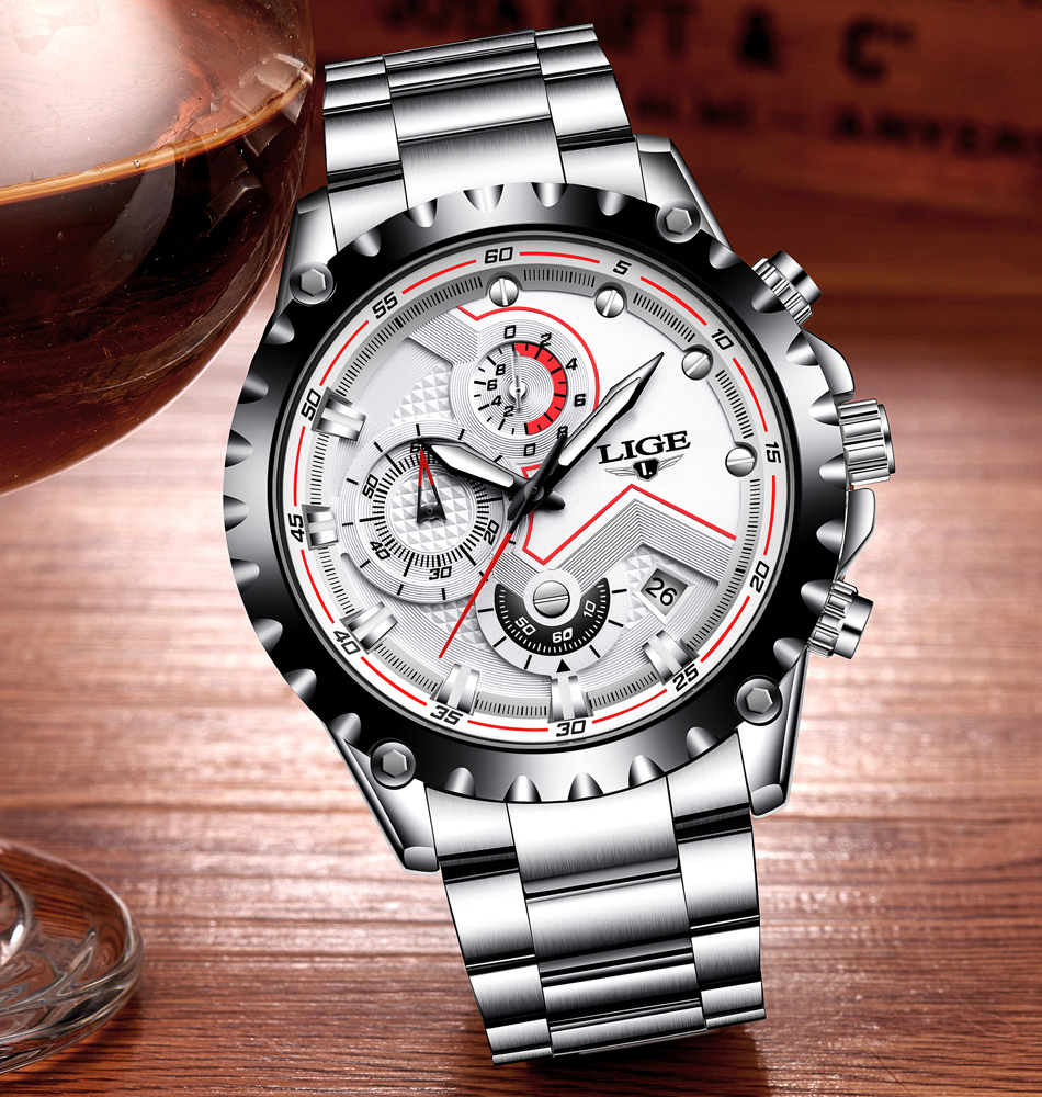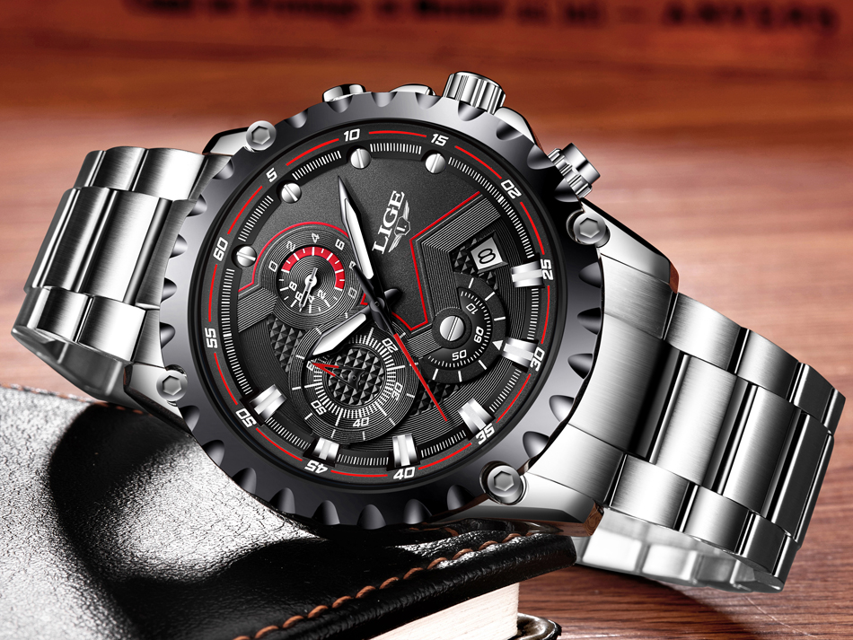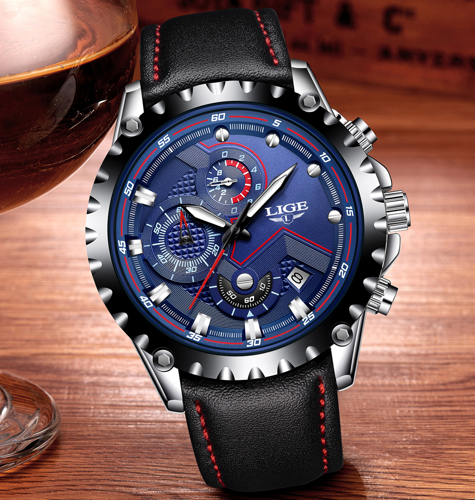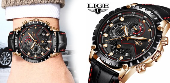 Стильные водонепроницаемые военно-спортивные часы "LIGE" .