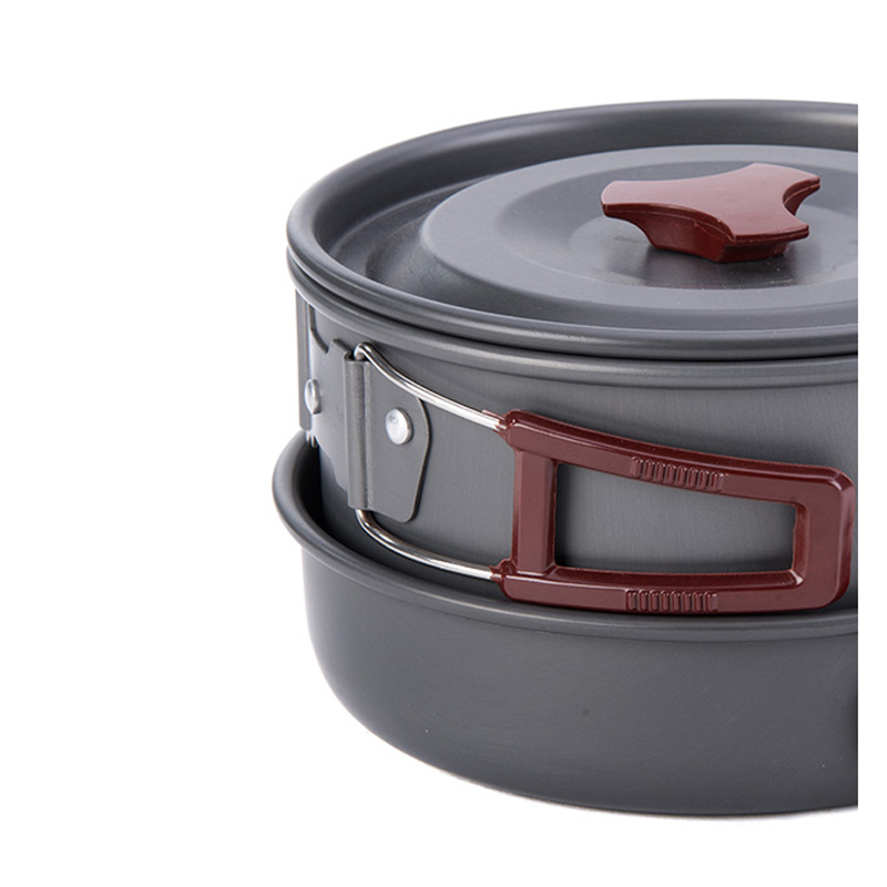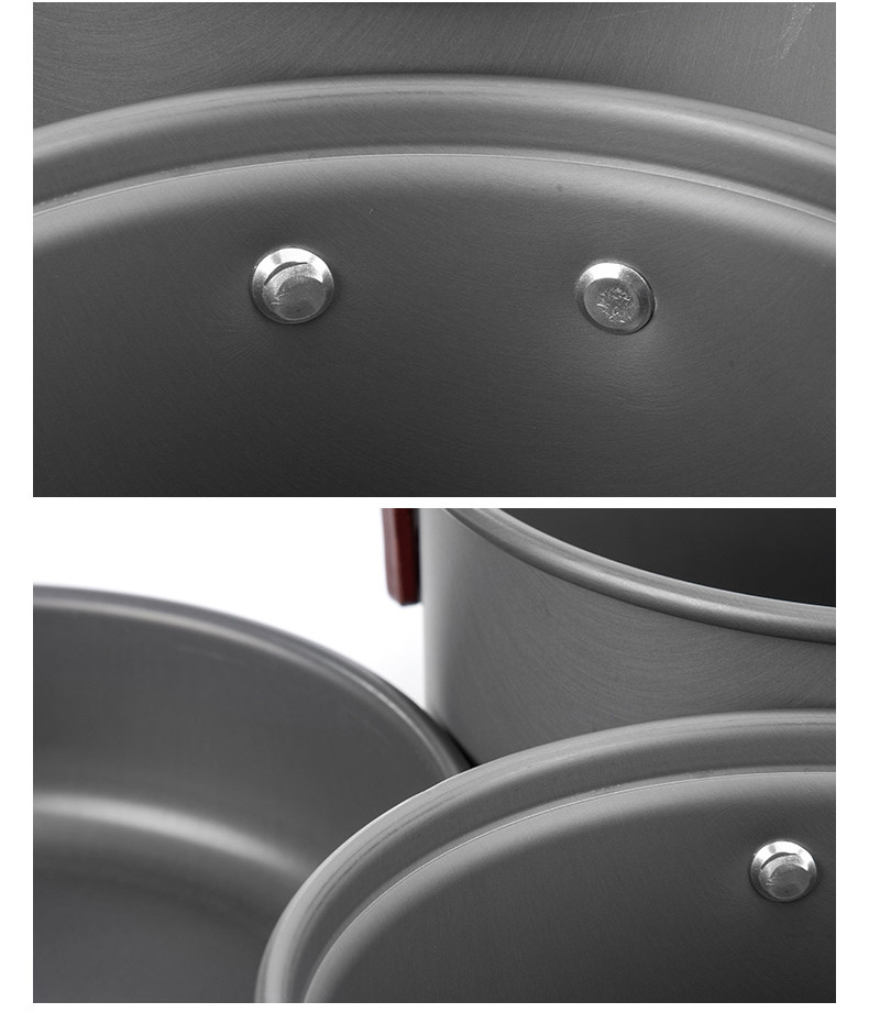 Походный набор из расчёта на 2-3 человек включает: котелки, сковорода, миски и дополнительная кухонная утварь. Кастрюли укладываются одна в одну по принципу матрёшки, экономя полезный объём Вашего снаряжения.