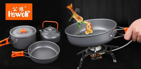 Походный ультролёгкой набор алюминиевой посуды "Hewolf".
