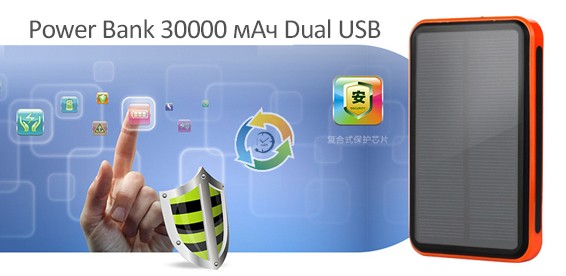 Водонепроницаемый банк энергии Power Bank с возможностью зарядки от солнца.