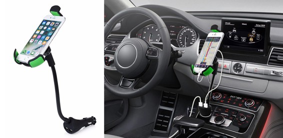 Держатель для телефона и зарядное устройство в одном. Гарантирует, что вы можете ездить безопасно, не опасаясь аварий или штрафов. Очень настраиваемая и гибкая, просто поворачивать любым способом, вращается на 360 градусов.