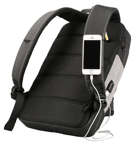 Нужно лишь подсоединить к кабелю внутри рюкзака свое зарядное устройство, и используя свой кабель, подключить телефон к USB – порту на рюкзаке.