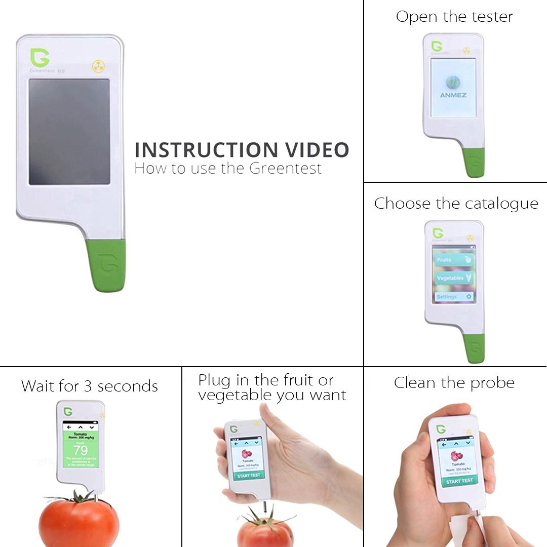 Прибор Greentest измеряет концентрацию солей, содержащиеся в анализируемых продуктах, как необходимые для жизни, так и те, которые могут нанести серьезный вред вашему здоровью. Технология Greentest помогает определить массовую концентрацию различных ионов солей, таких как хлорид- (Cl), сульфат- (SO4), нитрат- (NO3) и нитрит (NO2)-ионы. Прибор откалиброван так, чтобы показывать точное количество только нитрат-ионов, которые при неправильном выращивании фруктов и овощей накапливаются в них в больших количествах, представляя опасность для Вашего здоровья. Основываясь на сравнении полученных результатов с мировыми нормами, прибор выдаст Вам рекомендацию, пригоден ли растительный продукт к потреблению или он опасен для Вашего здоровья.