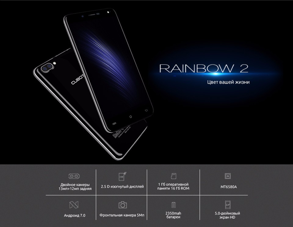Телефон Cubot Rainbow. Купон за 590 р. + доплата 5500 р. вместо 12500 р., скидка 51%. |