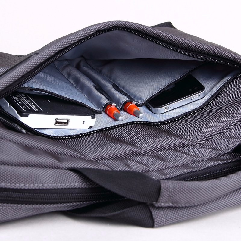 Документы, ручки, флешки и т.п. – все будет легко найти на своих местах. Для ноутбука предназначен отдельный отсек в центральном отделении. Компьютерную мышь и блок питания также можно разместить в центральном отделении. В комплекте – плечевой ремень с амортизирующей накладкой, предотвращающей скольжение ремня. Ремень легко отстегивается с помощью карабинов Модель подходит для ноутбуков с диагональю экрана до 16 дюймов.