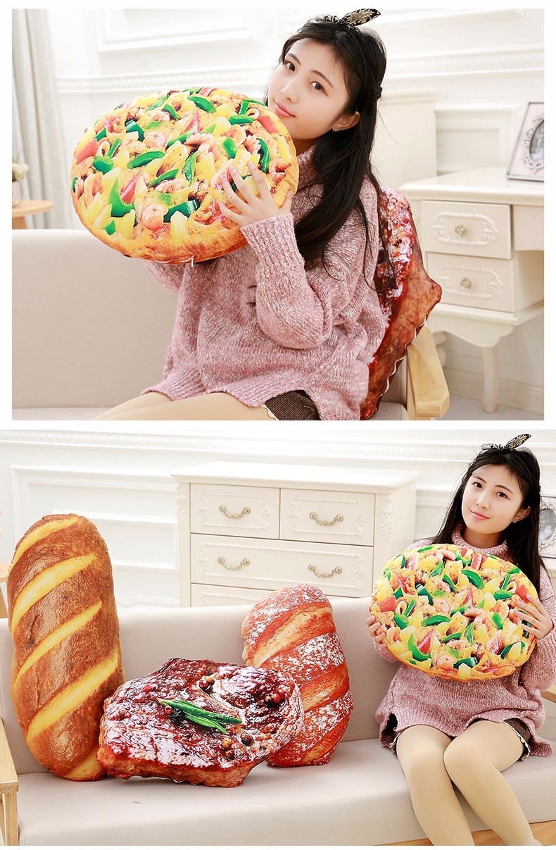 Считается, что тот обязательный минимум, необходимый человеку, чтобы чувствовать себя довольным, это хлеб и зрелища, тогда как очень многим и зрелища-то не нужны. Чего им действительно хочется, так это поесть и поспать. Предлагаем вашему вниманию самые аппетитные диванные подушки: батон, стейк, пицца.