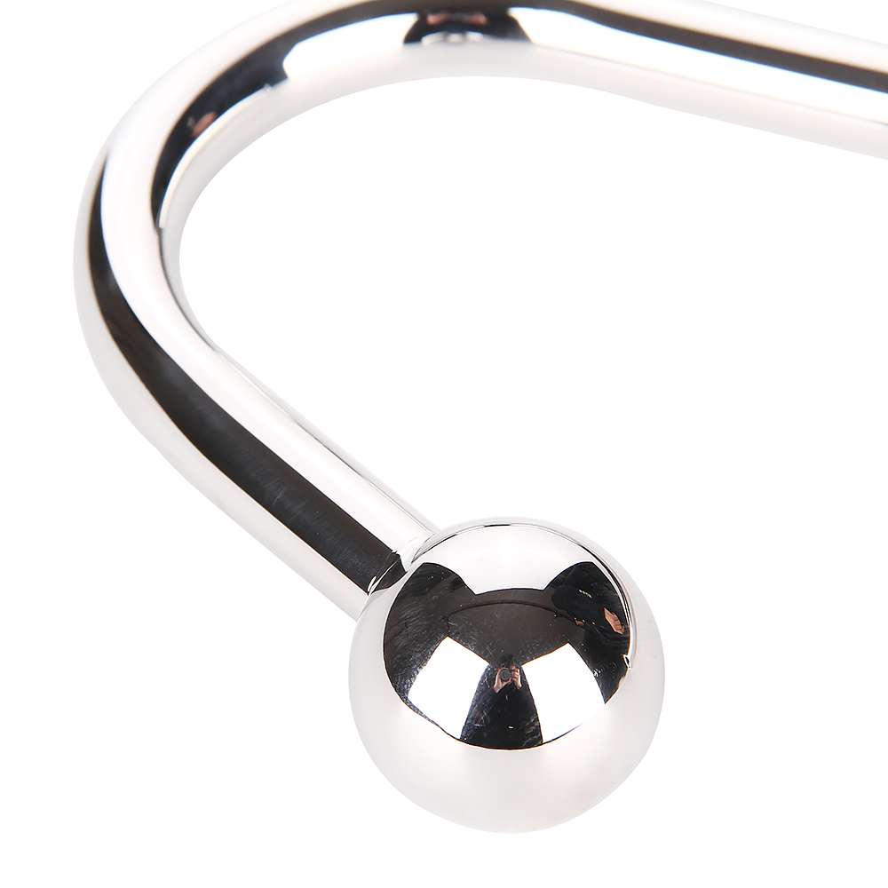 Крюк изготовлен из 100% медицинской стали, отполированная до зеркального блеска поверхность прекрасно скользит и приятно-прохладная на ощупь.Состоит из 2-ух основных частей: анального шарика и кольца, которое можно использовать с любым подходищим по толщине и размеру типом бондажа.