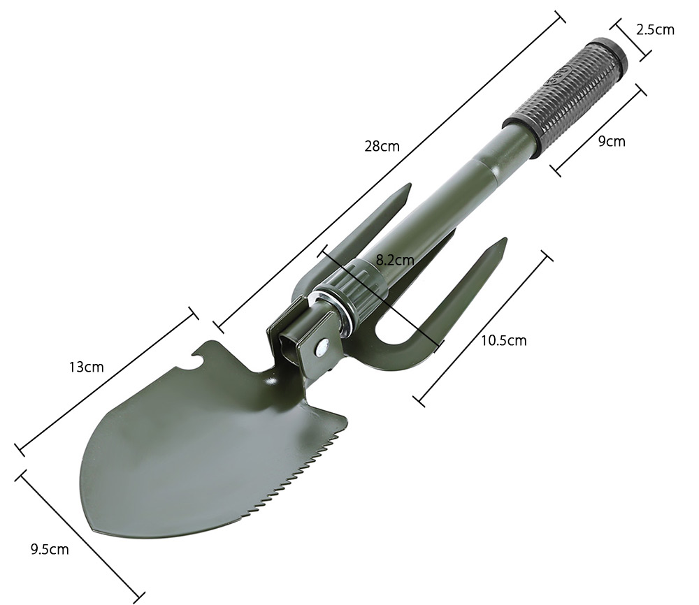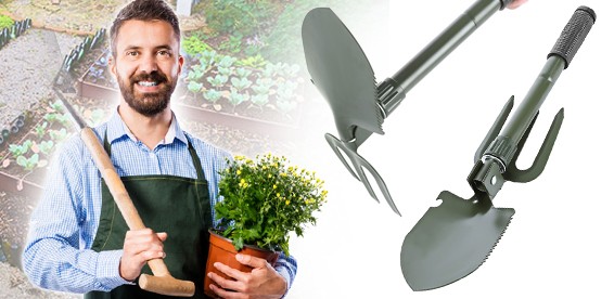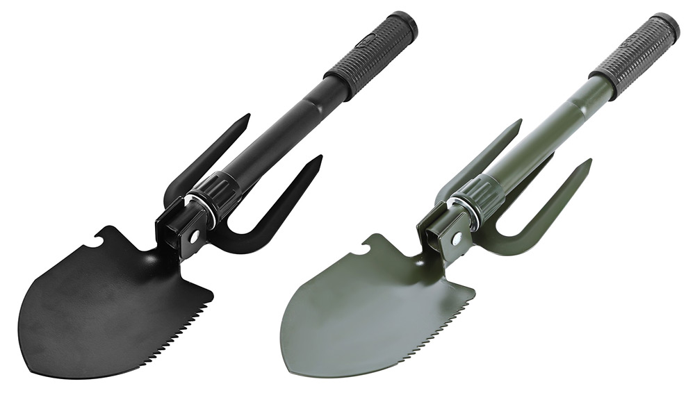 Складная походно-садовая лопатка-вилы в чехле - незаменима в походе, на рыбалке и охоте. Изготовлена из прочной углеродистой стали, благодаря чему имеет длительный срок службы. Одна из сторон рабочей части имеет зазубренную поверхность, за счет чего инструмент может перерубать корни деревьев. При хранении защиту от коррозии обеспечивает водонепроницаемый чехол. В сложенном состоянии данная модель занимает немного места.