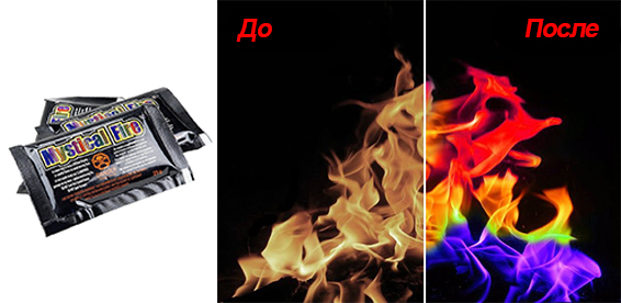 Внимание! Бросайте порошок в огонь прямо в упаковке и не готовьте над цветным пламенем еду.