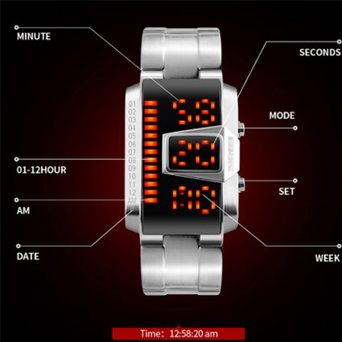 Часы"SKMEI" обладают следующими функциями: ЖК-дисплей, время, дата, неделя, подсветка, ударопрочность, водонепроницаемость 50 АТМ.