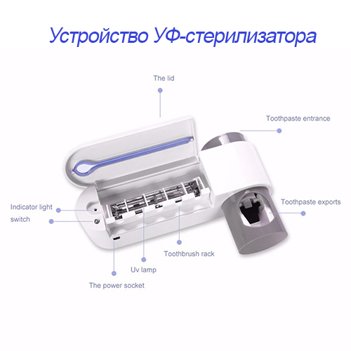 УФ стерилизатор 3-в-1: включает в себя зубную пасту, держатель для зубных щеток и стерилизатор для зубных щеток.