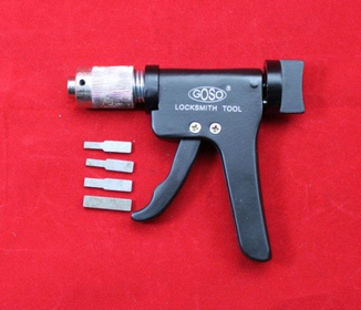 Принцип работы этого приспособления основан на использовании специальных насадок в ударном инструменте, который с помощью частых точечных толчков способен быстро открывать большинство моделей.