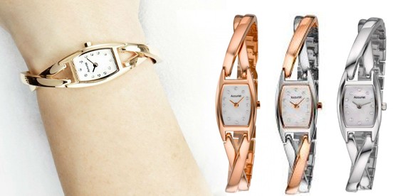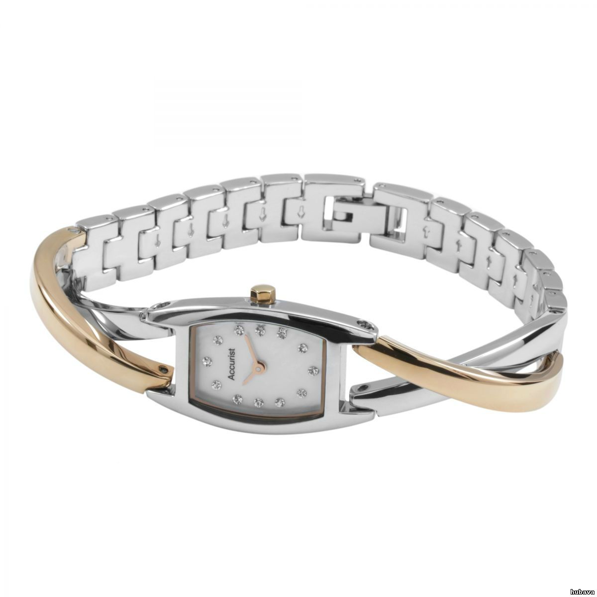 Дамские часы Accurist выполнены из нержавеющей стали и оснащены кварцевым механизмом. Двухтонный браслет розовой и белой позолоты с перламутровым циферблатом смотрится очень изысканно. Часы водостойкие, есть защита от влаги и брызг, но не для погружения в воду. Ширина - ок 18 мм, высота - ок. 8мм. Поставляются в красивой оригинальной подарочной коробочке.