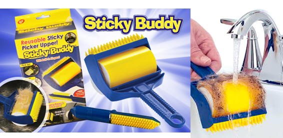 Sticky Buddy изготовлен из силиконового ацетона. Он не оставляет никаких следов, прилипая к поверхности — это его самое замечательное и выдающееся свойство! Применяйте его как обычный валик для уборки, который собирает крошки, зерна, волосы и прочий мелкий мусор. Используйте этот липкий валик для чистки одеял, сидений в машине, кресел. Используйте его как валик для одежды на всех возможных видах ткани, на замше, и на шелке, он не оставляет следов даже от клея! Когда чистка одежды окончена, просто сполосните Стикибадди в чистой воде, дайте высохнуть, и в дальнейшем пользуйтесь снова: поверхность его продолжает оставаться липкой.