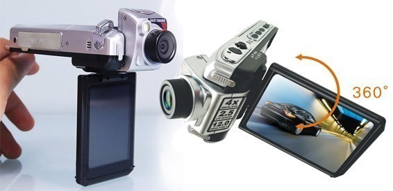 Отснятое видео можно сразу же просмотреть на встроенном ЖК-дисплее. Этот же дисплей поможет Вам выбрать подходящие параметры съемки, а выбирать есть из чего: можно выбрать разрешение съемки, ввести поправку экспозиции, добавить эффекты в реальном времени и многое-многое другое. Встроенный экран позволит направить камеру в нужном направлении. Угол обзора 120° позволит охватить практически всё пространство перед автомобилем. Важная особенность - вращающаяся на 180° по одной оси камера.