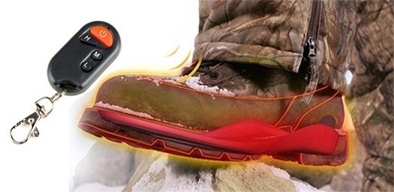 Беспроводная дистанционная система включения/выключения стелек обеспечивает лёгкое и удобное управление степенью нагрева стелек. Нажатие кнопки серого цвета на пульте ДУ включает подогрев выбранной интенсивности, нажатие красной кнопки выключает и включает устройство. Нажмите на кнопку Н: светодиод на пульте дистанционного управления моргнёт один раз, тройной светодиод — три огонька — на стельках загорится на 3 секунды, обозначая, что включен самый сильный нагрев.