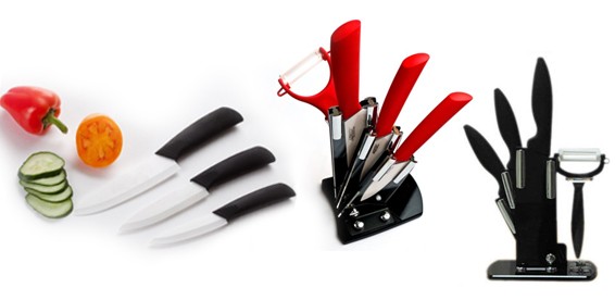 Эргономичные рукоятки сделаны из ABS-пластика (покрыты мягким каучуком), приятным на ощупь, тем самым нож не выскользает даже из мокрых рук. Лезвия керамических ножей невосприимчивы к воздействию пищевых кислот, на них не остаются пятна или ржавчина, не оставляют запаха и металлического привкуса. Поверхность лезвия имеет бритвенные (вогнутые) спуски с небольшой вертикальной насечкой, которая не дает продуктам прилипать к лезвию.