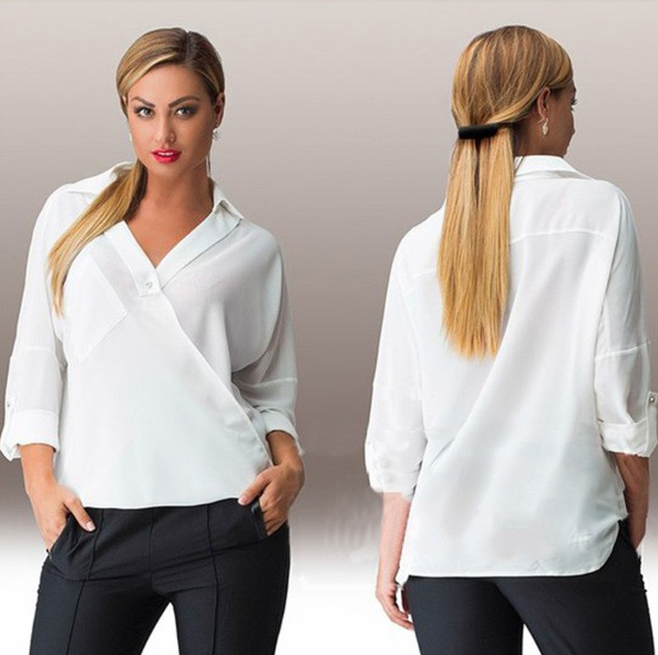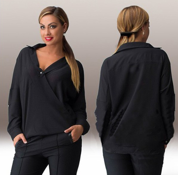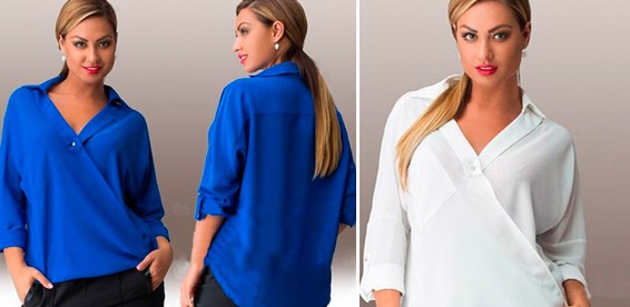 Рубашка свободного покроя с оригинальным вырезом и застёжкой. Она прекрасно скроет недостатки фигуры, при этом создавая стильный и актуальный образ.