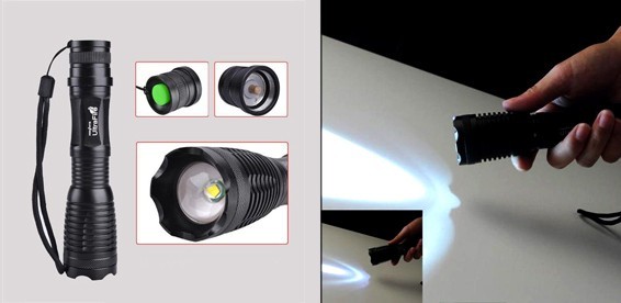 Водонепроницаемый светодиодный фонарик с регулировкой фокуса и яркостью свечения 1800люмен с АКБ и зарядным устройством в комплекте.