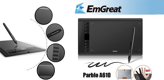 Удобный графический планшет "Parblo A610".Благодаря этому устройству вы можете легко редактировать и рисовать в Photoshop и во многих других программах редактирования изображения. Безусловно на любом компьютере можно пользоваться различными программами для редактирования или создания изображения при помощи мыши.Но также всем известно что когда дело доходит до чертежей или эскизов, компьютерная мышь не лучшим образом справляется со своей задачей.Наш графический планшет идеально подходит для таких задач,так как вы пользуетесь не мышью,а специальным цифровым пером(стилусом),которое точно и чётко выполняет ваши команды.Просто подключите графический планшет к своему монитору и редактируйте, рисуйте уже при помощи стилуса. Художники и дизайнеры по достоинству оценят удобство в использовании этого замечательного графического планшета "Parblo A610".