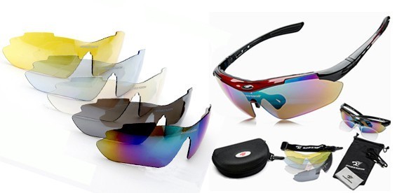 В комплекте 5 сменных линз - желтые, голубые, радужные, прозрачные, затемненные поляризованные.