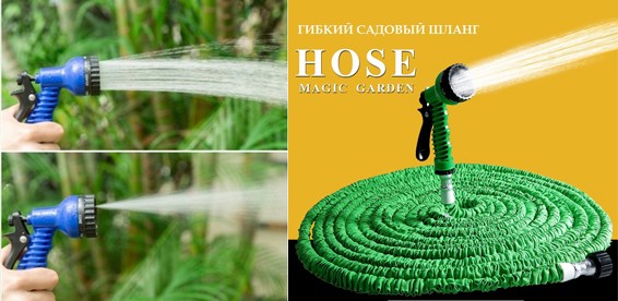 Шланг "Hose Magic Garden" изготовлен из прочного материала и оснащен удобной многофункциональной пистолетом-насадкой. Им невероятно удобно поливать сад, мыть машину, забор, лестницу, тротуарную плитку и многое другое.