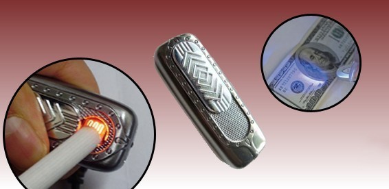 Кроме того в зажигалке имеется ультрафиолетовый фонарь, которым можно проверить подлинность денег или специальных знаков.