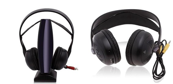 Наушники Wireless Headphone напоминают профессиональные наушники. Они подходят как для мужчин, так и для женщин. Сигнал передается с помощью ресивера, который одновременно является и подставкой для наушников. База работает от двух батареек типа АА. С помощью кабеля ресивер подсоединяется к источнику трансляции звука. Сзади есть разъем для подключения блока питания и внешнего микрофона, а также переключатель режимов работы.