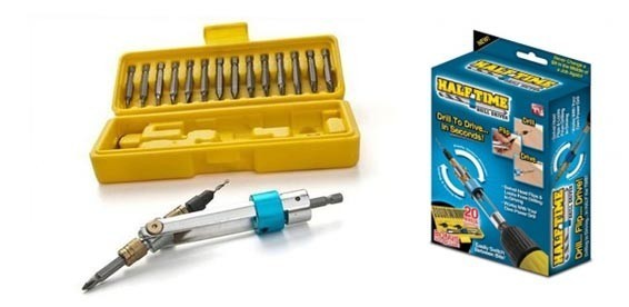 Халф Тайм Дрил представляет собой насадку, которая может одновременно являться и дрелью и шуруповертом! Пожалуй, каждый сталкивался с такой проблемой при осуществлении домашнего ремонта как постоянная смена инструментов при проделывании отверстий в тех или иных предметах, а затем вдевании в них болтов, гаек или шурупов.