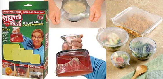 Силиконовая крышка-пленка Stretch and Fresh решит все проблемы, связанные с поиском подходящей упаковки для хранения продуктов. Ее надо просто натянуть на тарелку, миску, кастрюлю, и вот у вас есть герметичная крышка! Кроме того пленку можно обернуть сам продукт, растянув ее перед этим – маленькие пленки в наборе хорошо подойдут для фруктов и овощей, а в большую можно завернуть кусок мяса или даже небольшую курицу.