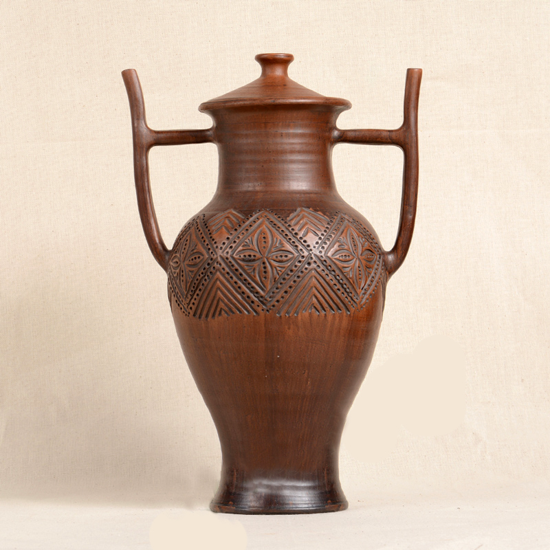 Надо отметить, что польза амфоры не только в красивом оформлении стола, но и в том, что любой напиток в ней будет дольше храниться. Это связано с уникальными природными свойствами глины. А также амфора может служить вазой для цветов.